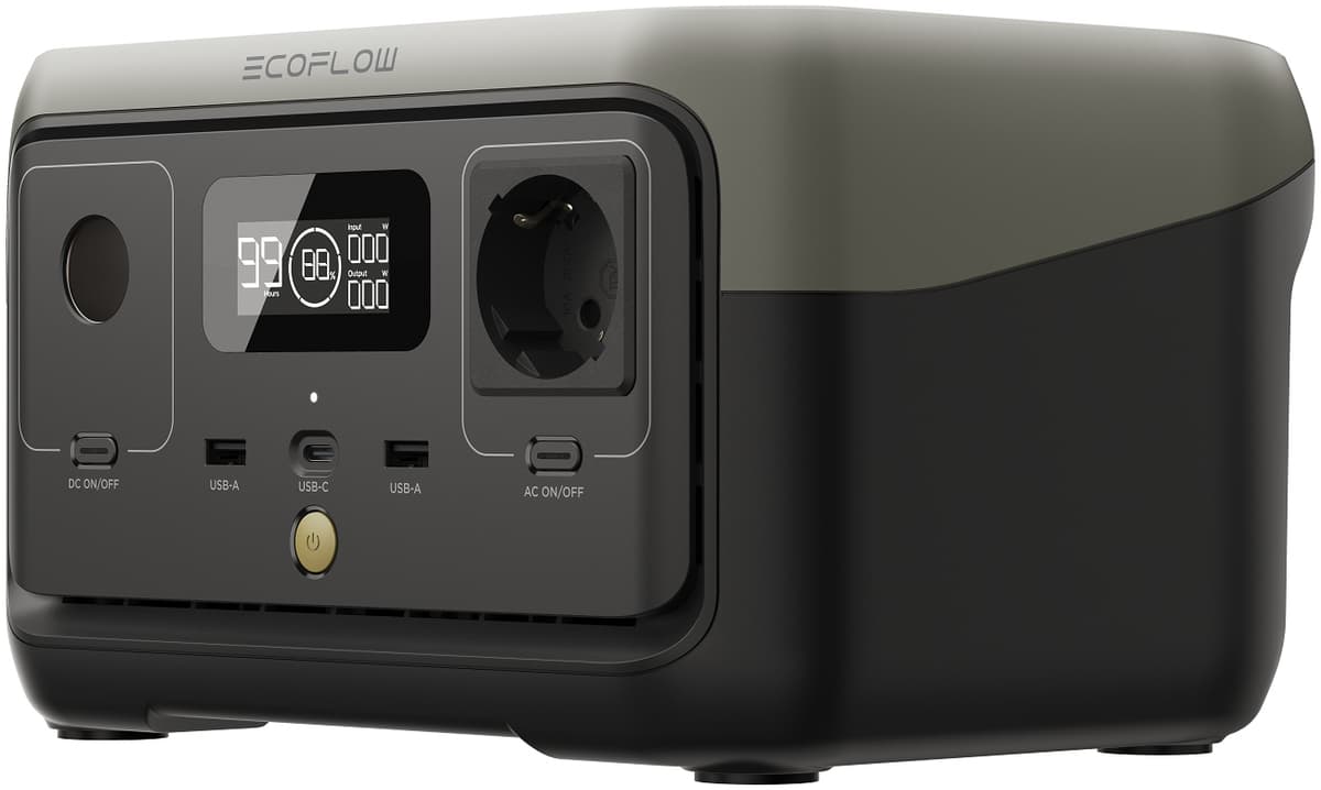 Ecoflow River 2: Kompakt 256Wh litium-polymer kraftstasjon med AC, DC, USB-A/C-utganger, app-integrasjon og 3,5 kg portabilitet.Les mer om produktet