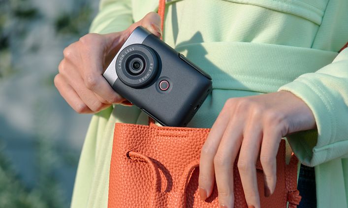 Det solide, vertikale kamerahuset representerer et helt nytt design fra Canon. Dette gir et portabelt og diskré kamera som lar innholdsskaper ta opptak av seg selv i folkemengder uten å tiltrekke seg oppmerksomhet. Den sentrerte opptaksknappen er skreddersydd for rask og smidig enhåndsbetjening, slik at du ikke risikerer å gå glipp av spontane og unike øyeblikk.