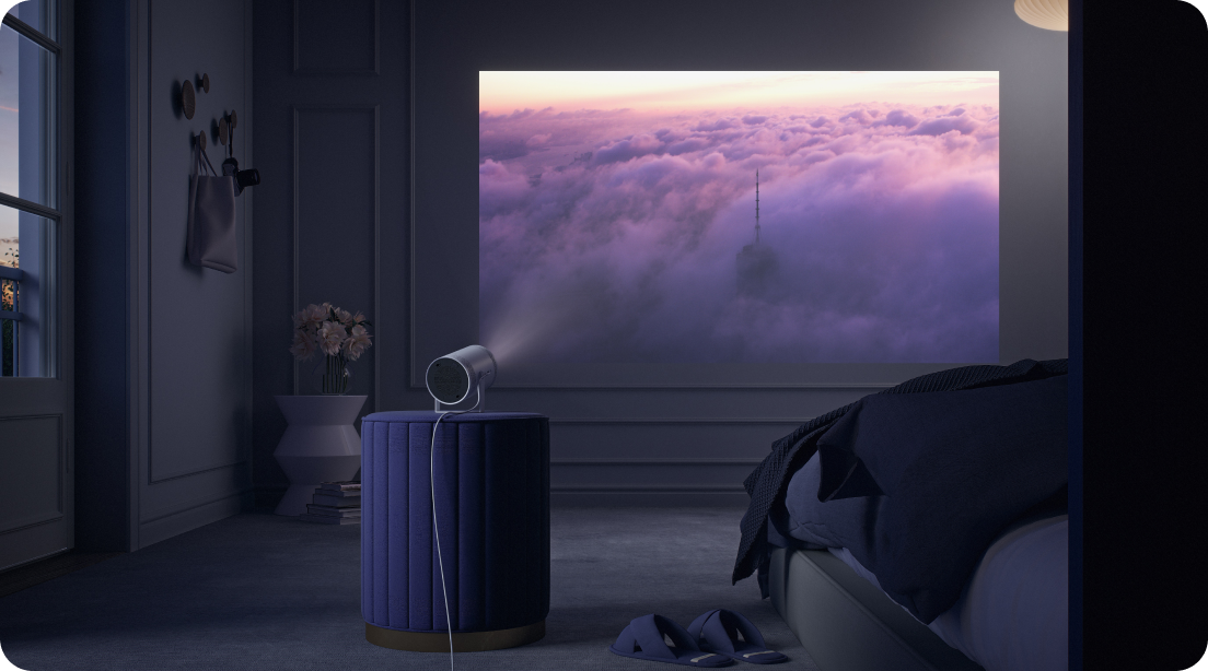 Nå kan du endelig få en storskjermopplevelse med filmer, underholdning og apper også når du er på ferie. Ta den med deg til feriehuset, hytta eller leiligheten til en venn for en filmopplevelse helt opptil 100” – akkurat der du vil. Det unike runde designet passer i stort sett alle rom, og innebygde høyttalere med 360-graders lyd gir deg en komplett filmopplevelse.