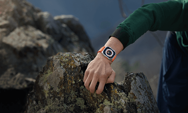 Spor treningen din med Apple Watch Ultra. Den mest robuste og funksjonelle Apple Watch noensinne, designet for utforskning, eventyr og utholdenhet. Med et 49 mm titandeksel i romfartskvalitet, ekstra lang batterilevetid, spesialiserte apper som fungerer med de avanserte sensorene, og en tilpassbar handlingsknapp.