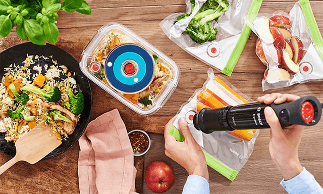 • Meal prep på et nytt nivå! Tips: Tilbered ukens mat i løpet av helgen, og vakuumpakk deretter maten i vakuumbokser fra Bosch slik at maten holder seg fersk opptil dobbelt så lenge*. I tillegg sparer du mye tid!