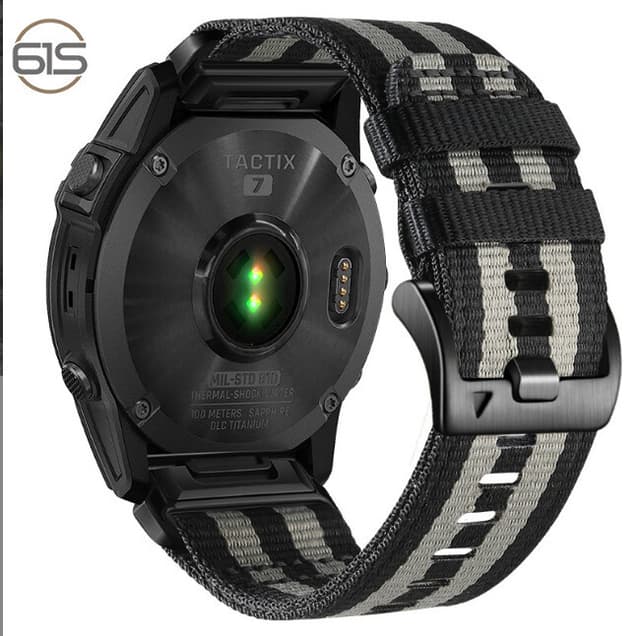 Hurtigutløser nylon klokkereim for Garmin Fenix 5X 6X 7X Tactix 7 Pro Svart + lys grå 22 mm