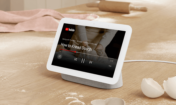 2. generasjons Nest Hub fra Google gir deg hjelp og underholdning hjemme. På kjøkkenet kan du f.eks. se serier, videoer og musikk, mens i stuen kan du kontrollere kompatible lys, TV-er og andre smartenheter med tastetrykk eller stemmen. Og på soverommet kan du bruke vekkerlyset på Nest Hub for å våkne lettere.