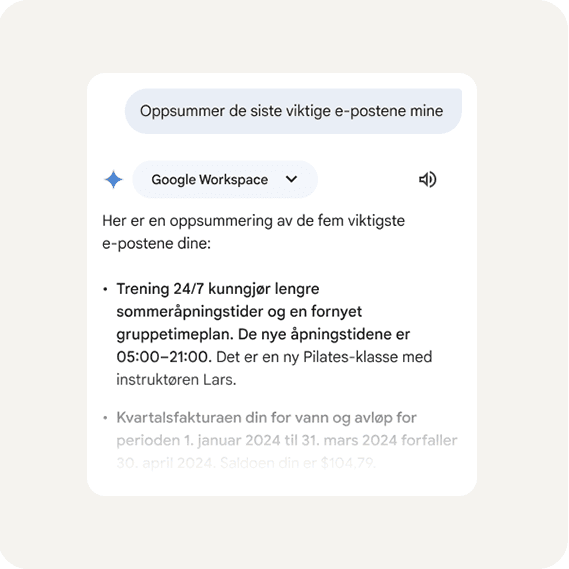 8 Gemini-mobilappen er tilgjengelig på utvalgte enheter, på enkelte språk og i enkelte land. Krever internettilkobling. Sjekk om svarene er presise.