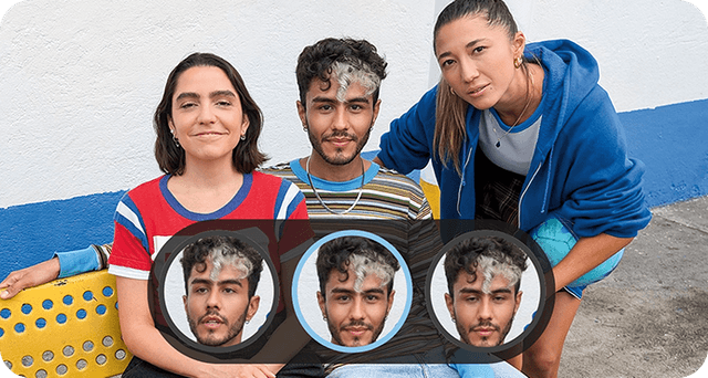 Med Beste bilde-funksjonen kan du ta fantastiske gruppebilder med bare ett knips. Pixel og AI finner det beste ansiktsuttrykket til alle som er med på bildet – eller du kan velge det du liker best.1