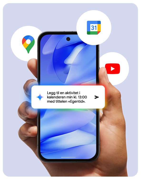 Dette er Pixel 9a – en smarttelefon utviklet av Google med mer enn du forventer, til en smart pris. Med innebygd Gemini som tar produktiviteten og kreativiteten til nye høyder. Et fantastisk kamera for utrolige bilder, batteri som varer hele dagen og ikke minst en robust konstruksjon. Og 7 år med oppdateringer - slik at den kan føles som ny og bedre over tid.