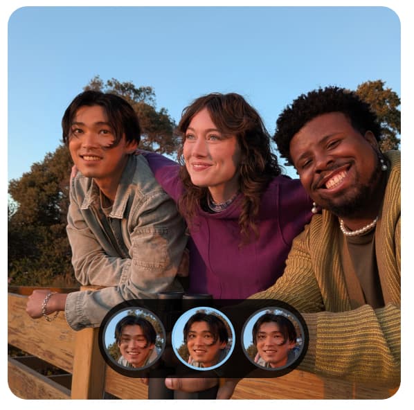 Få et fantastisk gruppebilde ved å kombinere lignende bilder. Pixel finner det beste ansiktsuttrykket til alle som er med på bildet – eller du kan velge det du liker best.
