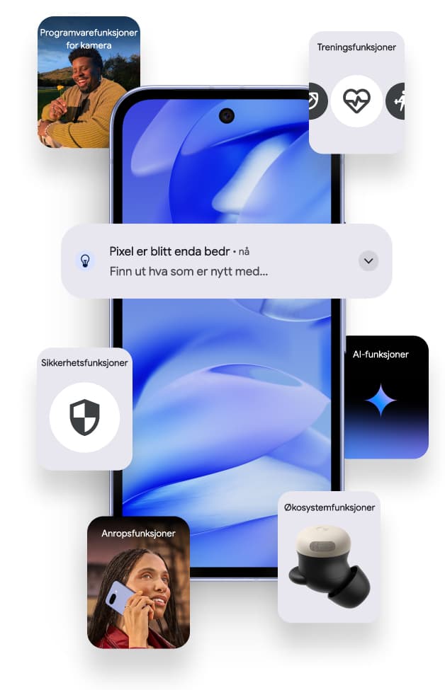 5 Se g.co/pixel/updates for detaljer om når din Pixel er kvalifisert for å motta Pixel Drops. Tilgjengeligheten av noen Pixel Drops kan variere.