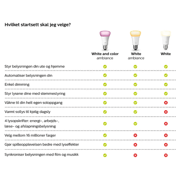 Forestill deg at du kan skru av alle lys i hele boligen med kun ett trykk. Opplev magien ved å forvandle et arbeidsrom til hjemmekino med et tastetrykk. Eller bruk lysene til å skape illusjonen om at noen er hjemme når du er på ferie. Velg en lysinnstilling som forbedrer konsentrasjonen eller som lar deg slappe bedre av etter en lang dag.