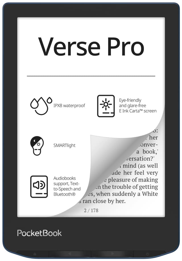 Vannavstøtende. Mange PockeBook-lesebrette er IPX8-vannavstøtende, noe som betyr at lesebrettet tåler nedsenking i ferskvann i opptil 60 minutter på to meters dybde.