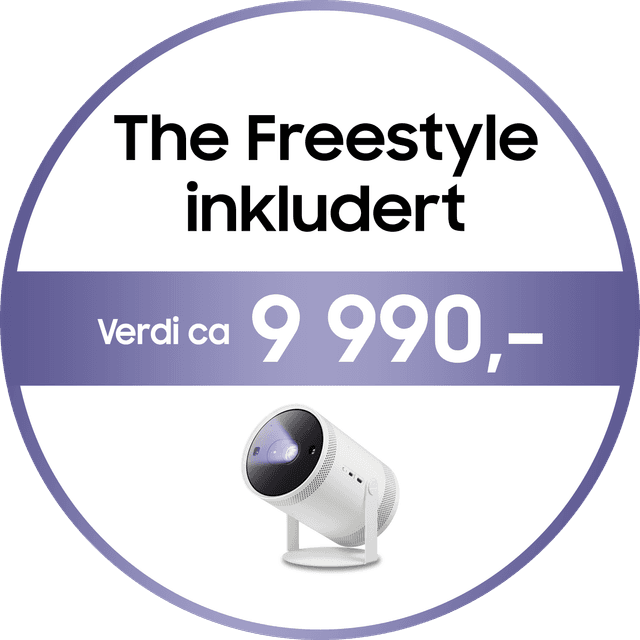 *Gjelder ved kjøp av utvalgte modeller av projektorer og utvalgte 2025 modeller av Samsung TV på samsung.com og hos utvalgte forhandlere under perioden 30.4.2025 – 31.03.2026. Begrensninger forekommer, og inkluderte tilbud hos streamingtjenestene kan variere under kampanjen. Krever Samsung-konto, og opprettelse av konto hos den aktuelle streamingtjenesten. Vilkår: samsung.com/no/smartstart