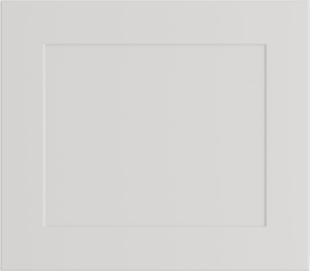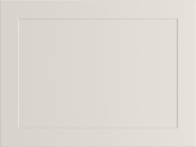 Fronten er laget av ett enkelt stykke lakkert MDF med et innfelt midtpanel.