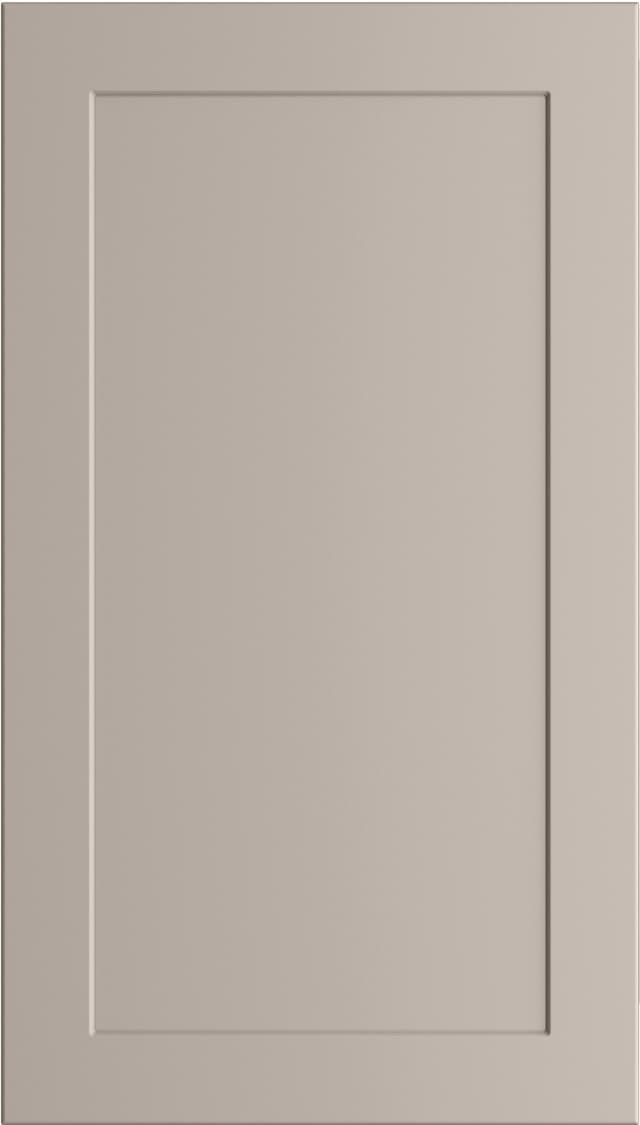 Fronten er laget av ett enkelt stykke lakkert MDF med et innfelt midtpanel.