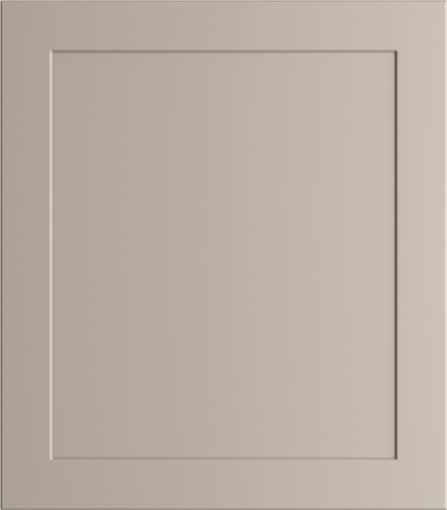 Fronten er laget av ett enkelt stykke lakkert MDF med et innfelt midtpanel.