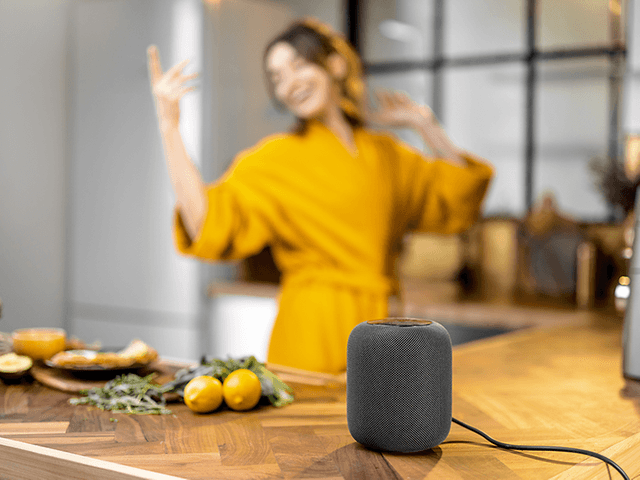 For å kunne kalle en høyttaler smart, må den kunne styres med stemmen. Dette krever at den har integrert stemmeassistent. Med innebygd stemmestyring trenger du ikke å gå omveien om apper, men heller snakke direkte til høyttaleren isteden. Smart-høyttaleren kan også brukes som et verktøy til å styre smartproduktene du har hjemme.