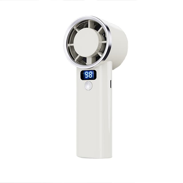 Bærbar håndholdt vifte med 5 hastigheter og digitalt display Hvit