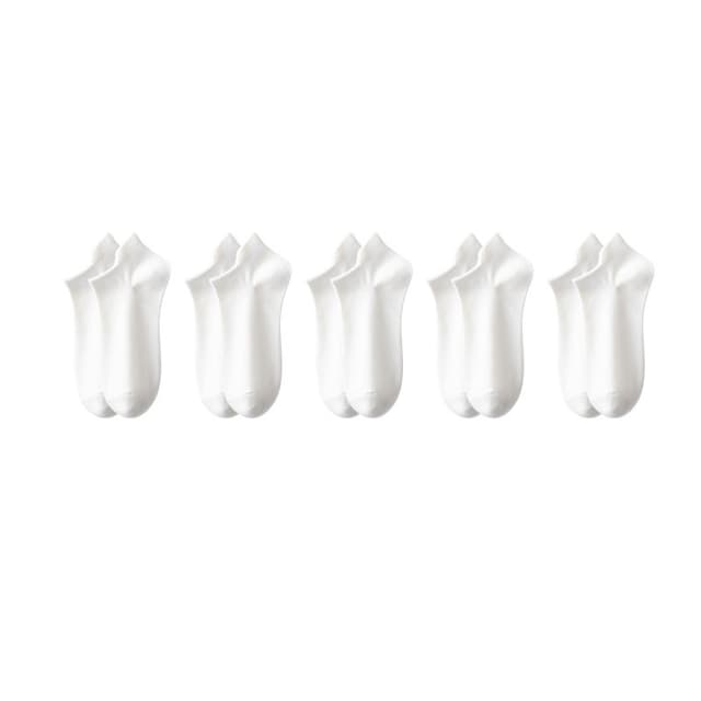 5-pakning usynlige sokker med hælbeskyttelse, båtsokker for menn Hvit