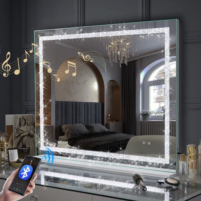 VANITII Hollywood sminkespeil med krystall lyslist Bluetooth 100x80 cm