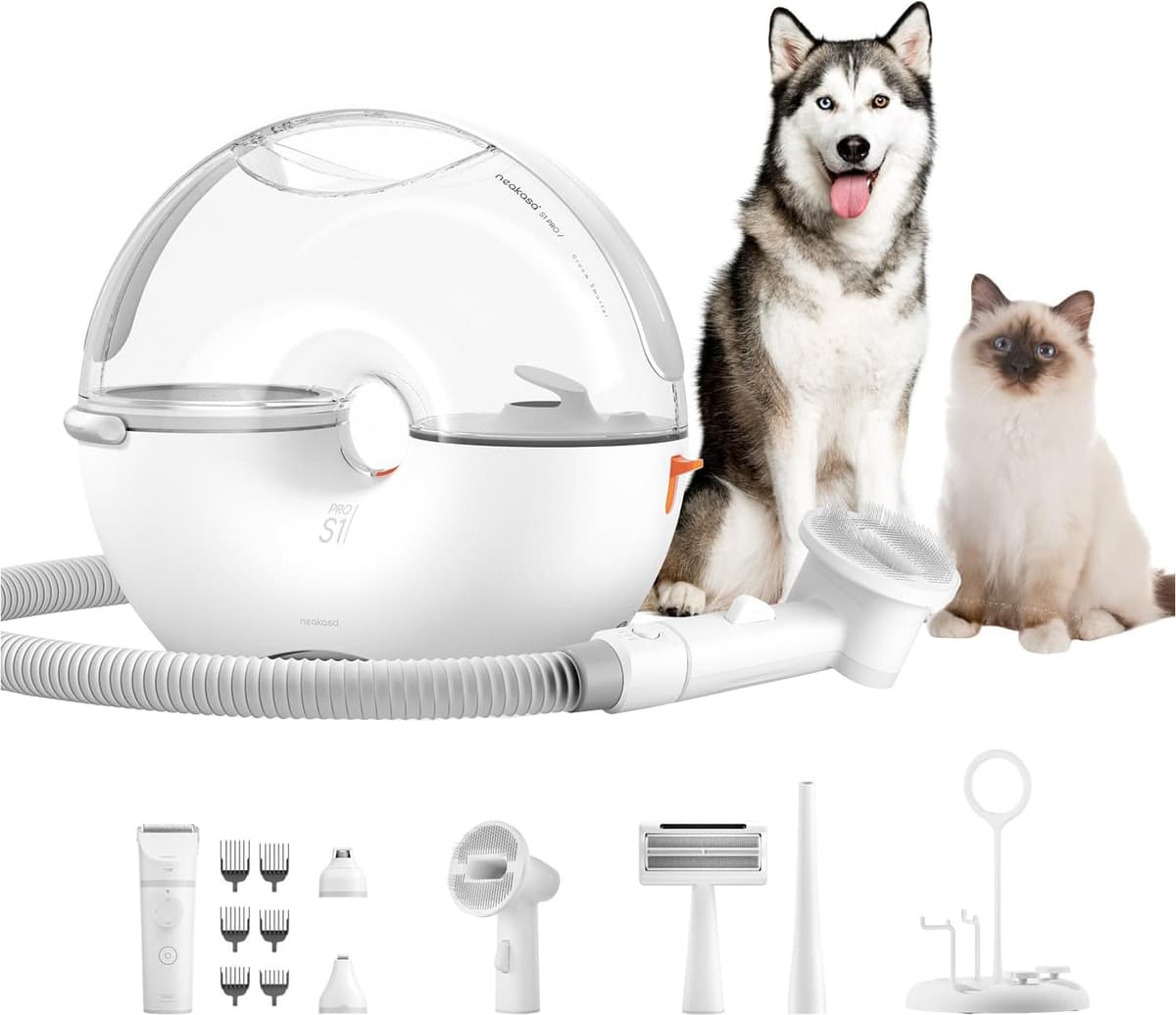 Møt Neakasa S1 Pro pelspleiesett, ditt kjæledyrs nye bestevenn. Verktøyet fjerner skånsomt løse hår og floker, og sørger for en sunn og skinnende pels. Den er stillegående, så kjæledyret ditt vil holde seg rolig og avslappet under hele prosessen.Les mer om produktet