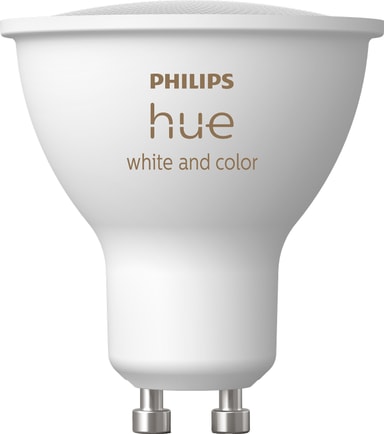 Få tilgang til smartbelysning i spotlyset ditt med Philips Hue LED-lyspære GU10 4,2W. Den er ustyrt med ultra-lav dimming, har kraftig lysutstråling, og Bluetooth-tilkoblingsmuligheter. Koble lyset til smarttelefonen din med Hue-appen.Les mer om produktet