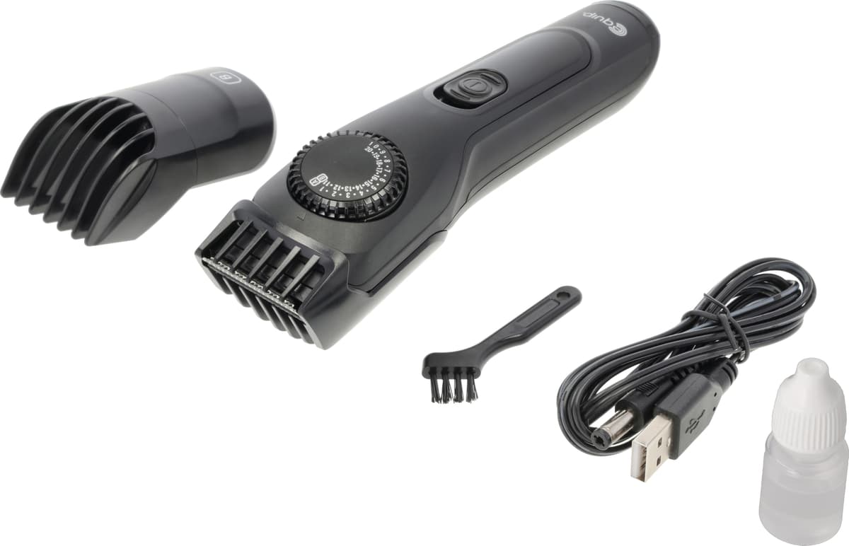 Style skjegget ditt med letthet takket være Equip skjeggtrimmer 30955 og dens kombinasjon av et justeringshjul og to kammer. Trimmeren er helt trådløs og utstyrt med et oppladbart litiumbatteri som varer opptil 90 minutter.Les mer om produktet