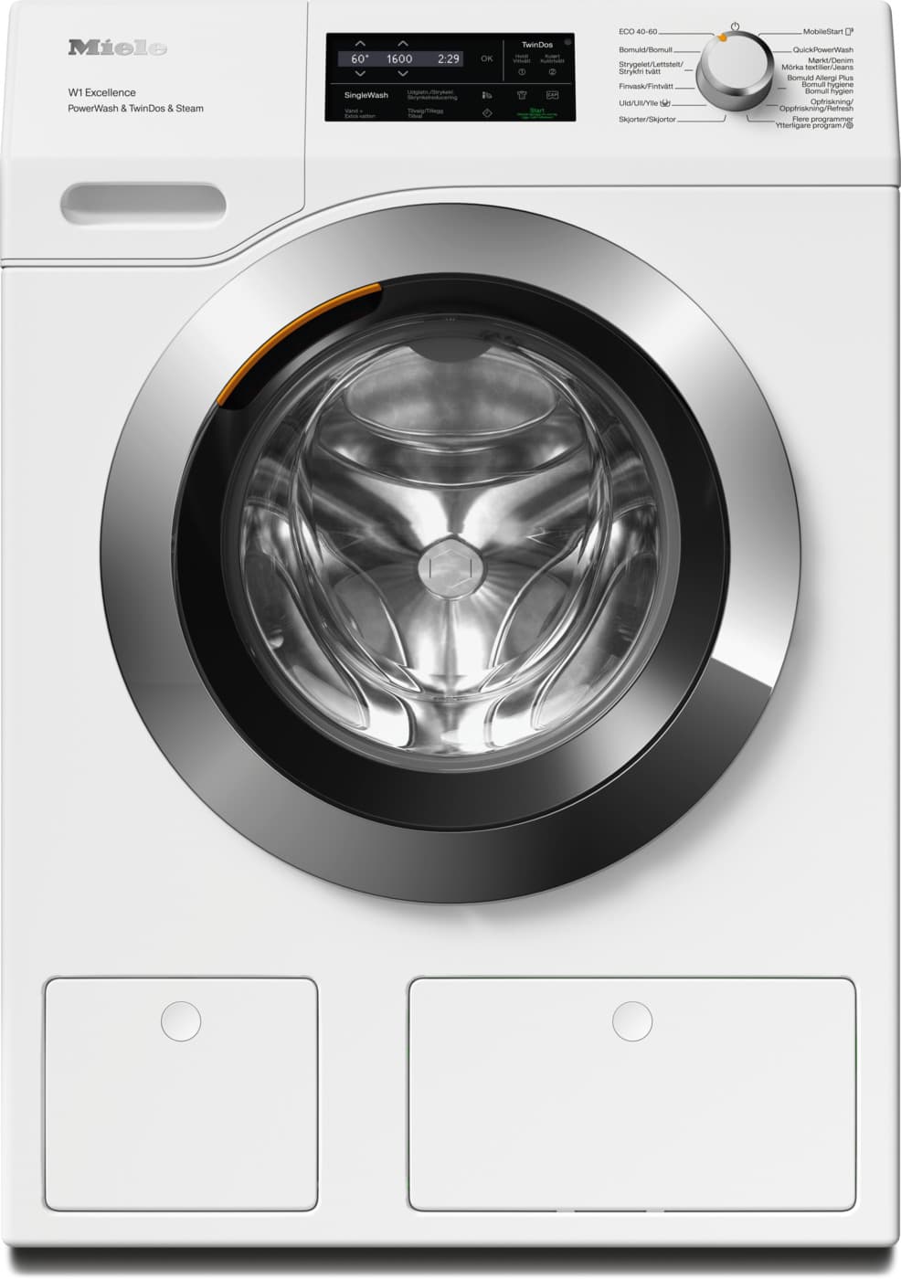 Økonomisk vask i alle situasjoner: Det perfekte samspillet mellom det automatiske doseringssystemet TwinDos® og den glimrende rengjøringseffekten til PowerWash sikrer maksimal effektivitet ved vask. Med det praktiske SingleWash-alternativet kan selv enkeltplagg vaskes effektivt. Dette gjør det mulig å spare opptil 40 % vaskemiddel* og opptil 60 % energi og tid** ved hver bruk.Ekstra energieffektivitet