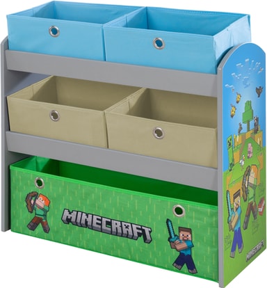 Phoenix Minecraft lekehylle forvandler barnerommet til et pikselert eventyr, med et autentisk design, varig MDF-konstruksjon, og praktisk oppbevaring med fire mindre og en stor tøyeske for leker og bøker.Les mer om produktet