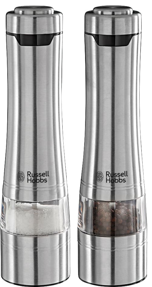 Stilige Russell Hobbs salt og pepperkvern 23460-56 i rustfritt stål vil gi spisebordet ditt en fin touch. Disse brukervennlige kvernene har keramisk slipesystem for fin eller grov krydderkverning, samt praktisk belysning.Les mer om produktet