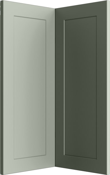 Med sin subtile innramming, fløyelsmyke matte overflate og rene proporsjoner, tilfører Epoq Canvas Sage hjørnedørfront en stillfaren eleganse til ethvert kjøkken. Designet fungerer sømløst på tvers av stiler, fra tidløs landlig sjarm til moderne interiør. For en mer moderne estetikk, kan du vurdere å kombinere den med pillardekkpaneler på en kjøkkenøy eller integrere den med skapfronter fra Edge konturserien. Fronten er produsert som en helstøpt MDF-front med frest midtparti, har en ytre ramme på 55 mm og en tykkelse på 19 mm.