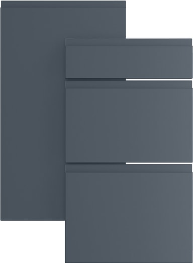 Epoq Integra Blue Grey dørfront har et glatt utseende uten håndtak, men med innebygde grep som trekker oppmerksomheten mot et elegant, horisontalt design. De strømlinjeformede overflatene skaper et rolig, moderne uttrykk. De subtile detaljene gir funksjon samt en visuell balanse i hele rommet. Perfekt for et elegant kjøkken eller vaskerom.