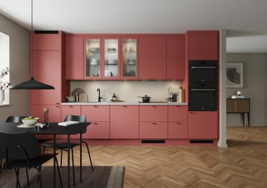 Med Epoq Trend Red Coral skapdør kan du kle kjøkkenet i en behagelig og moderne rødfarge. Design kjøkkenet med utgangspunkt i varme koralltoner eller kombiner med lysere farger for et mer unikt utseende. Det tidløse designet og kvalitetsmaterialet som er brukt sikrer at kjøkkenet vil holde seg funksjonelt i flere tiår uten å gå av moten.