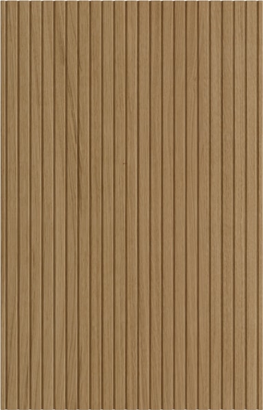 Epoq Pillar Warm Oak dørfront fremhever skjønnheten i vertikale trelameller i et elegant, moderne design. Denne serien består av dører og paneler for overskap, høyskap og øyskap, og er et perfekt supplement til Edge-serien. De kombinerer høy kvalitet med en tilpasningsdyktig stil, og er en sofistikert og rimelig måte å friske opp kjøkkenet ditt på.