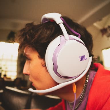 JBL Quantum 250 gaming headset leverer oppslukende lyd med 50 mm dynamiske drivere i karbon, JBL Quantum Spatial Sound og en kardioid støyreduserende mikrofon, noe som sikrer klar kommunikasjon og komfort på alle plattformer.Les mer om produktet