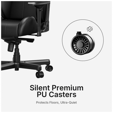 Denne gamingstolen har en base med fem hjul som sikrer stabilitet og mobilitet under intense spilløkter. Den jevne og stillegående driften gjør at stolen glir uanstrengt over ulike overflater uten å forstyrre fokuset ditt eller andre i nærheten.