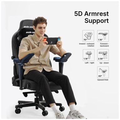 De fullt justerbare 5D armlenene tilbyr et bredt spekter av bevegelser, inkludert oppoverfolding, innover-utover rotasjon, og opp-ned, venstre-høyre og frem-tilbake glidning. Denne fleksibiliteten gir optimal komfort for armer og albuer, og tilpasser seg ulike spillestiler og preferanser.