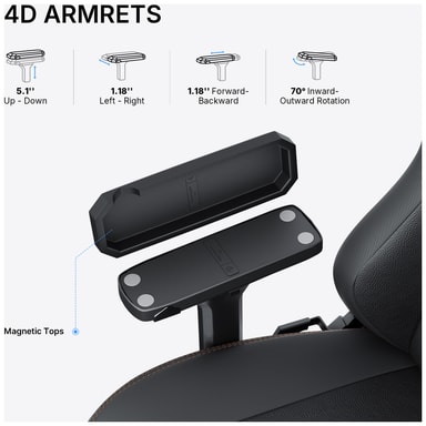 De flerdireksjonelle armlenene kan høyde-, vinkel-, og posisjonsjusteres, slik at du finner perfekt ergonomisk positur for dine armer og skuldre.
