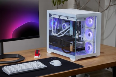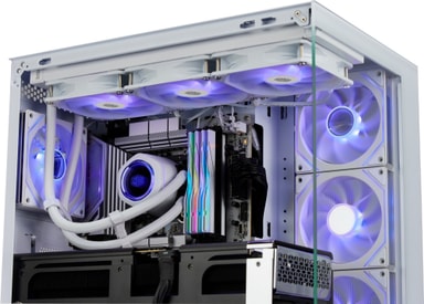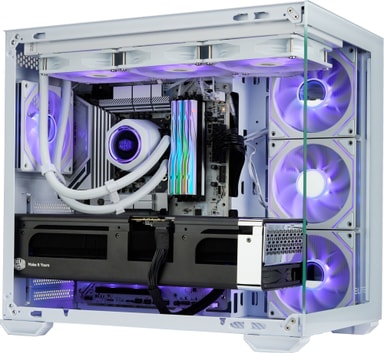 Kabinettet har 270° heldekkende paneler av herdet glass med sømløs avfasning, som gir en klar oversikt over systemets komponenter og forbedrer det visuelle uttrykket.