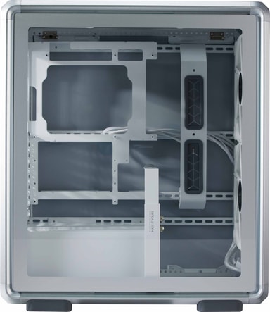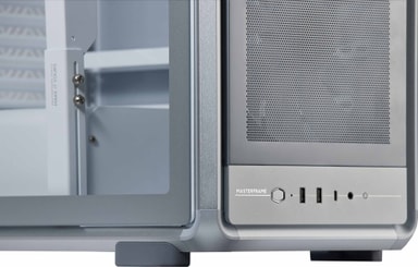 MasterFrame 500 Mesh har en markant, åpen ramme-estetikk laget av aluminium for styrke og lett holdbarhet. Sidepanelet i herdet glass viser frem komponentene dine, mens den modulære utformingen gjør tilpasning og oppgraderinger enkelt. Med verktøyfri fjerning av paneler og innebygd støttebrakkett for skjermkort.