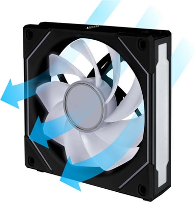 Lian Li UNI FAN SL INF INF Reverse 120 mm infinity RGB PWM vifte snurrer opp til 2100 o/min for sterk kjøling. Den har 40 lyssterke RGB-lysdioder. Viften er bygget med en magnetisk FDB og reversert blad, og den går jevnt og stille for langvarig bruk.Les mer om produktet