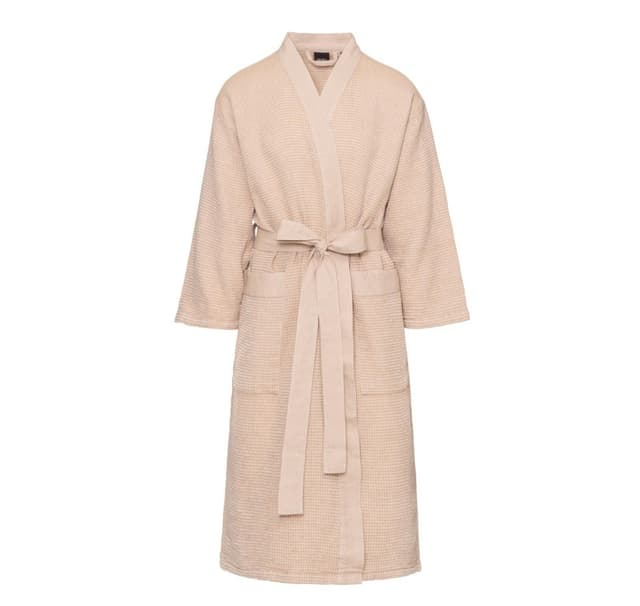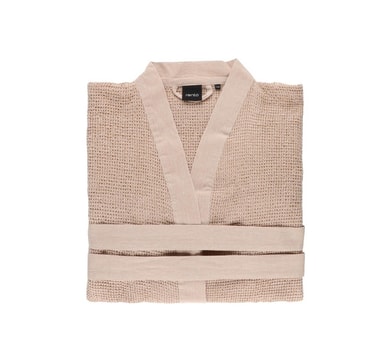 Rento Kenno Badekåpe voksen L/XL. Laget av resirkulert bomullsmateriale, noe som gir stoffet en naturlig mykhet og levende tekstur. Behagelig badekåpe med chambray-kanter og belte.
