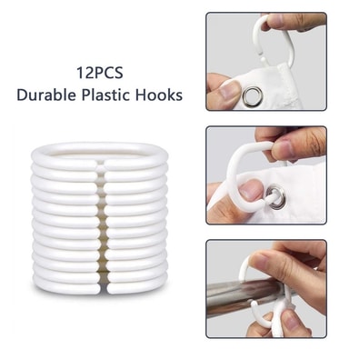 【Enkel installasjon】Inkluderer 12 plastkroker til gardinene for rask og problemfri installasjon på badet ditt.