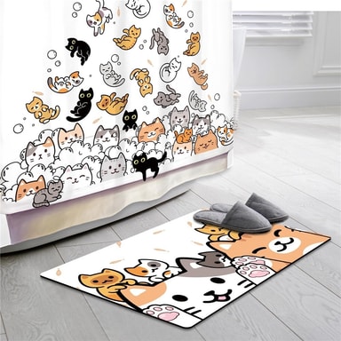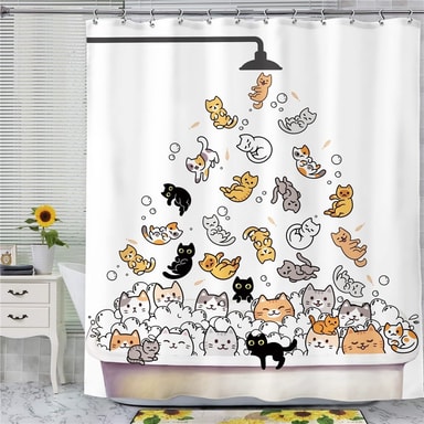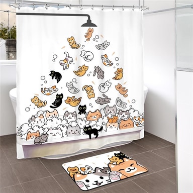 Tegneseriedyr dusjforheng 180 x 180 cm vanntett polyester baderomsdeler med 12 kroker - Katter