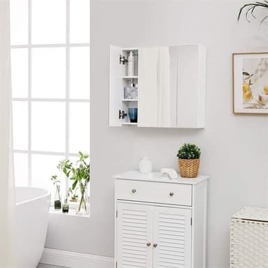 Speilskap med 3 speildører og justerbare hyller - HvitLes mer om produktet
