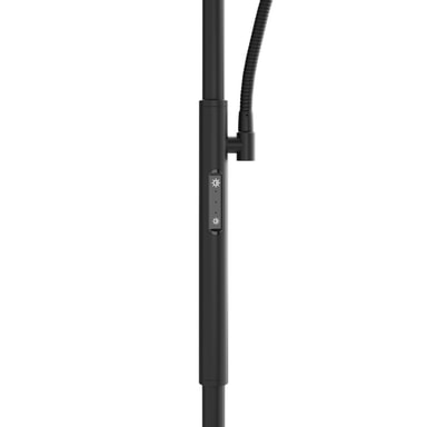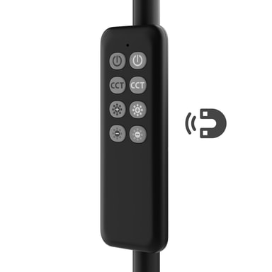 Det robuste stålkonstruksjonen og den runde foten garanterer ikke bare en utmerket stabilitet, men bidrar også til det moderne utseendet som passer perfekt inn i ethvert interiør. En spesielt enkel håndtering sikres også av det intuitive berøringspanelet og den magnetiske fjernkontrollen, som lar deg styre gulvlampen komfortabelt på avstand og som deretter kan festes til lampestangen.
