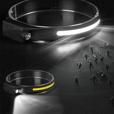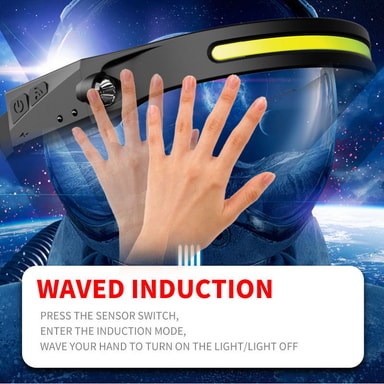 Silikonskall kan justeres til alle hodestørrelser. Med bevegelsessensor, vink med hånden for å slå på/av lyset. Lys opp til 230 grader og 150 fot unna med 350 lumen LED-lysene. med én knapp for å bytte 5 lysmoduser.Les mer om produktet