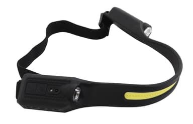 TYZON® oppladbar LED-hodelykt i silikon med LED-lysstripe, 2 sidelykter til spotlys og sensorstyring. Innebygd oppladbart 1200 mAh-batteri, som gir 3-6 timers driftstid.Les mer om produktet