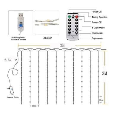 LED Gardin 3x3 meter - FargeLes mer om produktet