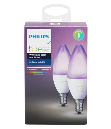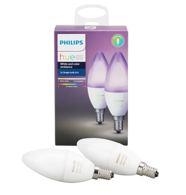 Skap den perfekte atmosfæren i hjemme ditt med Philips Hue White and color ambiance lyspære (6.5W B39 E14). Lyssett rommet med tradisjonell hvit belysning eller velg blant 16 millioner tilgjengelige farger.