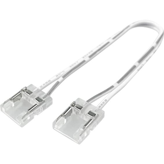 Kompakt og robust skjøt med fleksibelt ledd for 24 V COB LED-strips. Gir pålitelig kontakt og sømløs lysflyt mellom stripene.