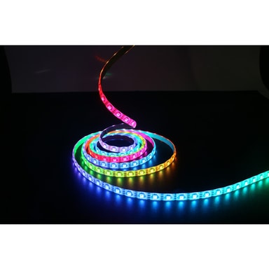 5 meter lang digital LED-strip med innebygd chip (IC) som gjør at den kan vise flere farger samtidig. 16 statiske farger og 200 lyseffekter/moduser. Beregnet for innendørs bruk, IP20.Les mer om produktet